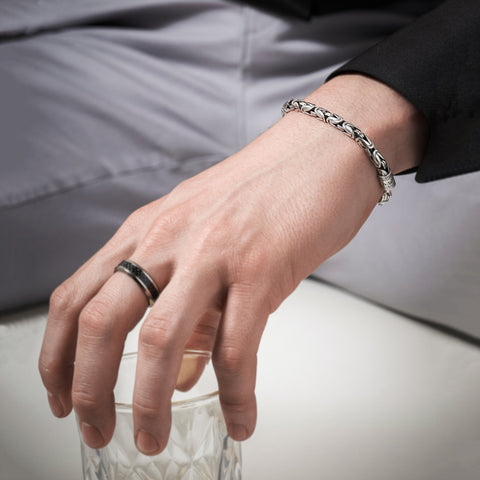 고순도 실버가 주는 가장 큰 차이는 착용감과 질감에서 분명하게 드러납니다. 합금 비율이 낮은 은은 표면이 비교적 부드럽고, 인위적으로 강한 광택을 내기보다는 차분하고 깊이 있는 은빛을 유지하는 경향이 있습니다. 손목이나 피부에 닿았을 때 느껴지는 촉감 또한 가볍기보다는 묵직하고 안정적인 느낌에 가깝습니다. 이러한 특성은 장시간 착용 시에도 실버 특유의 이질감이나 부담을 줄여 주는 요소로 작용합니다.
