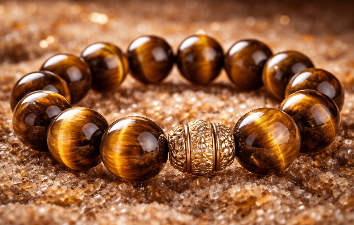 일반적으로 골드 호안석이라 불리는 색상은 황갈색에서 금빛에 가까운 톤을 띠며, 빛의 방향에 따라 금속처럼 반짝이는 것이 특징입니다. 이는 호안석 내부의 미세한 섬유 구조가 빛을 한 방향으로 반사하면서 나타나는 샤토얀시(Chatoyancy) 현상 때문입니다.